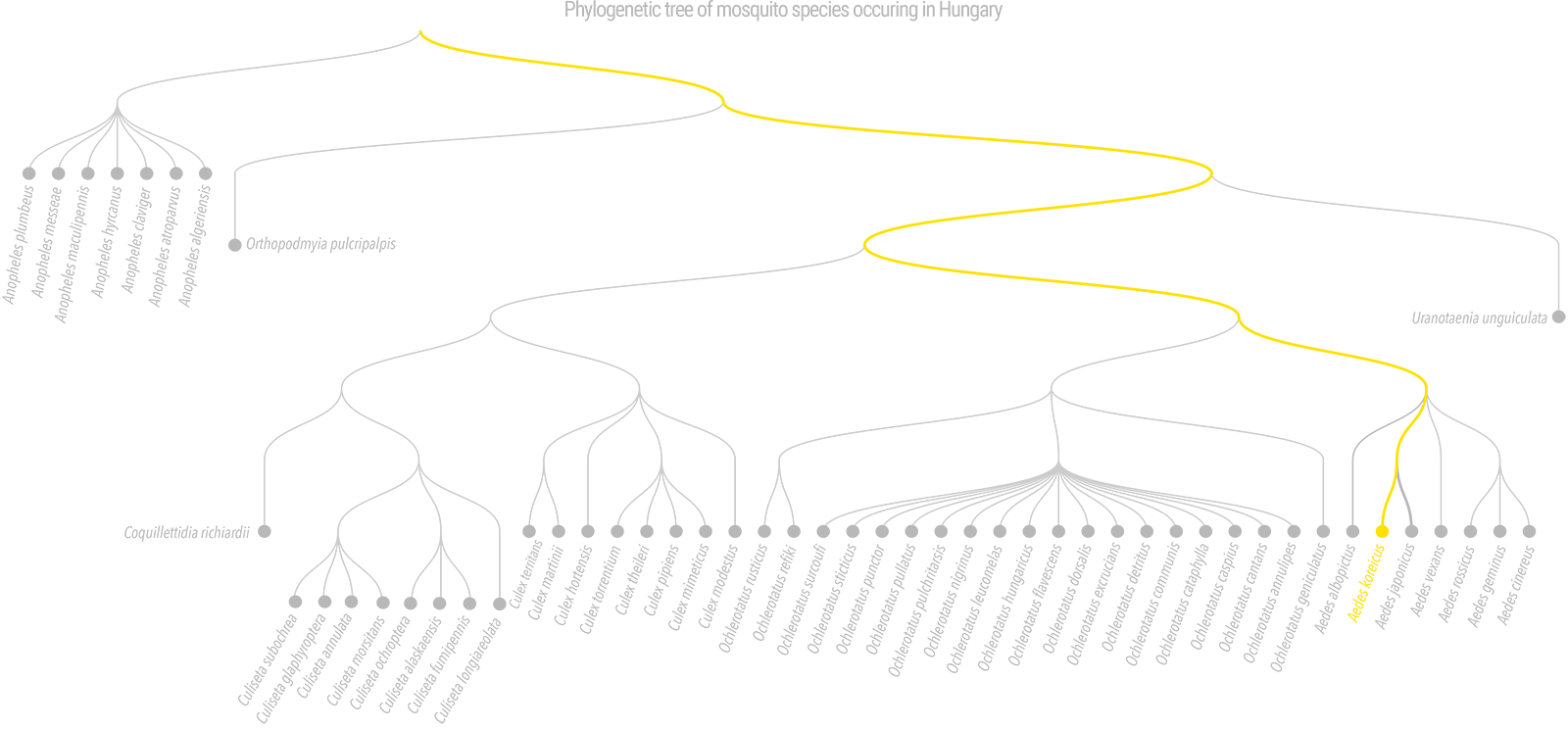 The Korean mosquito (Aedes koreicus) is native to Asia, with its original distribution limited to Japan, South Korea, northeastern China, and eastern Russia. The species first appeared in Europe in 2008 in Belgium, where it quickly became established. It subsequently appeared in several other European countries, including Hungary, and spread across the continent in an increasingly large area: in Italy in 2011, in Switzerland, Slovenia, western Russia, and the Black Sea coast in 2013, in Germany and Hungary in 2016, and on the Crimean Peninsula in 2018. In Hungary, a few specimens belonging to the Korean mosquito species were first caught in Baranya County in 2016, but since then it became established in several places in the country (Tolna County, Budapest and its surroundings).
